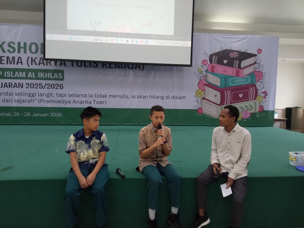 KATAWAY.CO.ID — Ahmad Wayang, penulis asal Serang Banten, melatih puluhan siswa dan siswi SMP Al Ikhlas yang berada di Jalan Cipete III, Kecamatan Cilandak, Jakarta Selatan, selama tiga hari, Selasa-Kamis (3-5 Februari 2026). Dalam pelatihan yang bertajuk Workshop Karturema (Karya Tulis Remaja), Ahmad Wayang tidak sendiri, melainkan bersama Komunitas Menulis Pontang-Tirtayasa (#Komentar) yang dinahkodai Encep Abdullah.