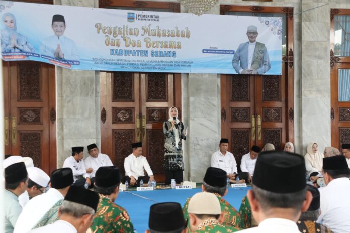 KATAWAY.CO.ID – Bupati Serang Ratu Rachmatuzakyah beserta jajaran Pemerintah Kabupaten (Pemkab) Serang para alim ulama, kiyai, tokoh masyarakat, pemuda dan organisasi masyarakat (ormas) islam menggelar Pengajian Muhasabah dan Doa Bersama di Teras Pendopo Bupati pada Rabu, 24 Desember 2025 sore.