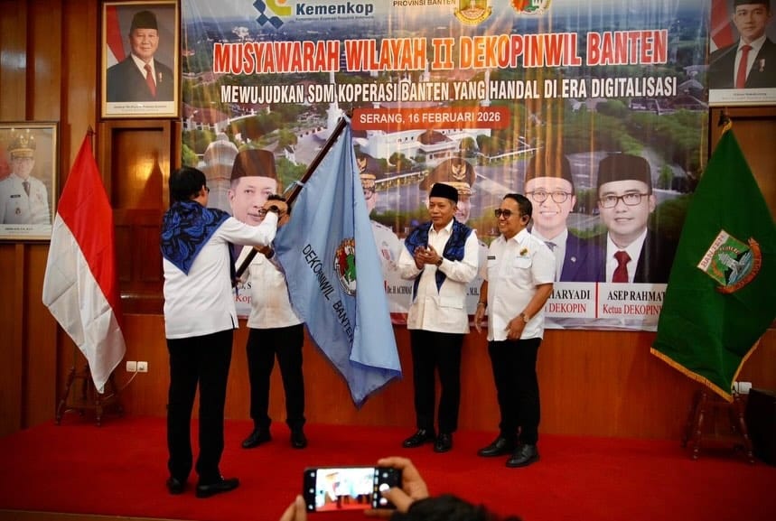 KATAWAY.CO.ID – Pemerintah Provinsi (Pemprov) Banten menegaskan komitmennya menjadikan koperasi sebagai penggerak utama ekonomi daerah, terutama dalam memperluas akses produk usaha mikro, kecil, dan menengah (UMKM). Penegasan itu mengemuka dalam Musyawarah Wilayah II Dewan Koperasi Indonesia (Dekopin) Wilayah Banten di Gedung Negara Provinsi Banten, Kota Serang, Senin (16/2/2026).