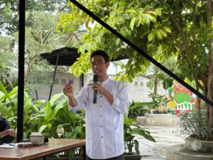Salah satu peserta diskusi mengajukan pertanyaan, tentang konsep penulisan dari buku “Makanan Tradisional dari Tanah Sultan Banten”. Wayang menjelaskan bahwa gaya penulisan dari buku tersebut menggunakan teknik penulisan feature atau dengan gaya bercerita untuk menginformasikan dan menghibur pembaca secara mendalam. “Jadi tulisan hasil wawancara dari beberapa narasumber baik pelaku usaha UMKM atau Usaha Mikro, Kecil, dan Menengah, dan juga sejarawan Abah Yadi. Itu kemudian saya kemas dalam bentuk penulisan feature. Dan tentu saja tulisan ini juga dilengkapi referensi dari buku-buku dan sumber lainnya,” terang Wayang.