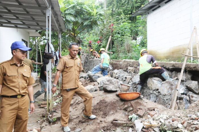 Atas bencana longsor yang mengakibatkan TPT jebol, camat Ugun mengaku langsung melakukan koordinasi dengan DPUPR agar segera dilakukan pembangunan TPT kembali.