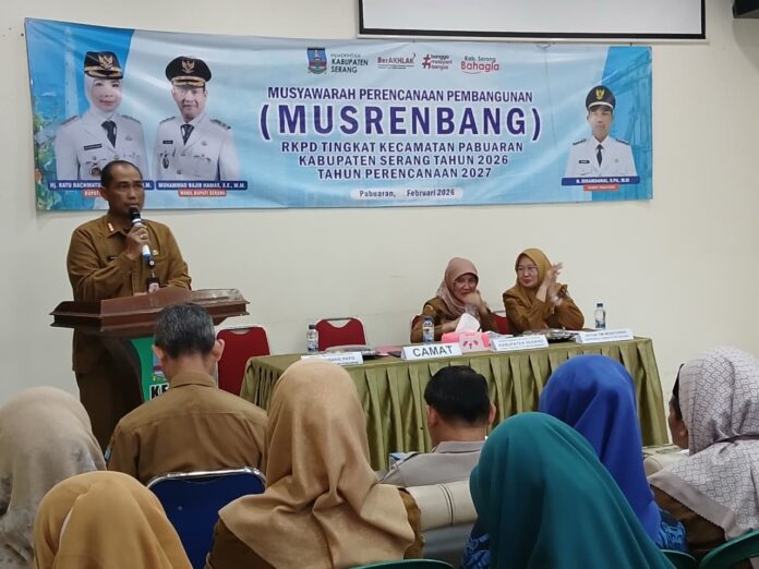 KATAWAY.ID – Kecamatan Pabuaran menggelar Musyawarah Perencanaan Pembangunan (Musrenbang) Rencana Kerja Pemerintah Daerah (RKPD) Tingkat Kecamatan Pabuaran Tahun 2026 untuk perencanaan Tahun 2027. Kegiatan tersebut berlangsung di Aula Kantor Kecamatan Pabuaran, Kabupaten Serang, Selasa (3/2/2026).