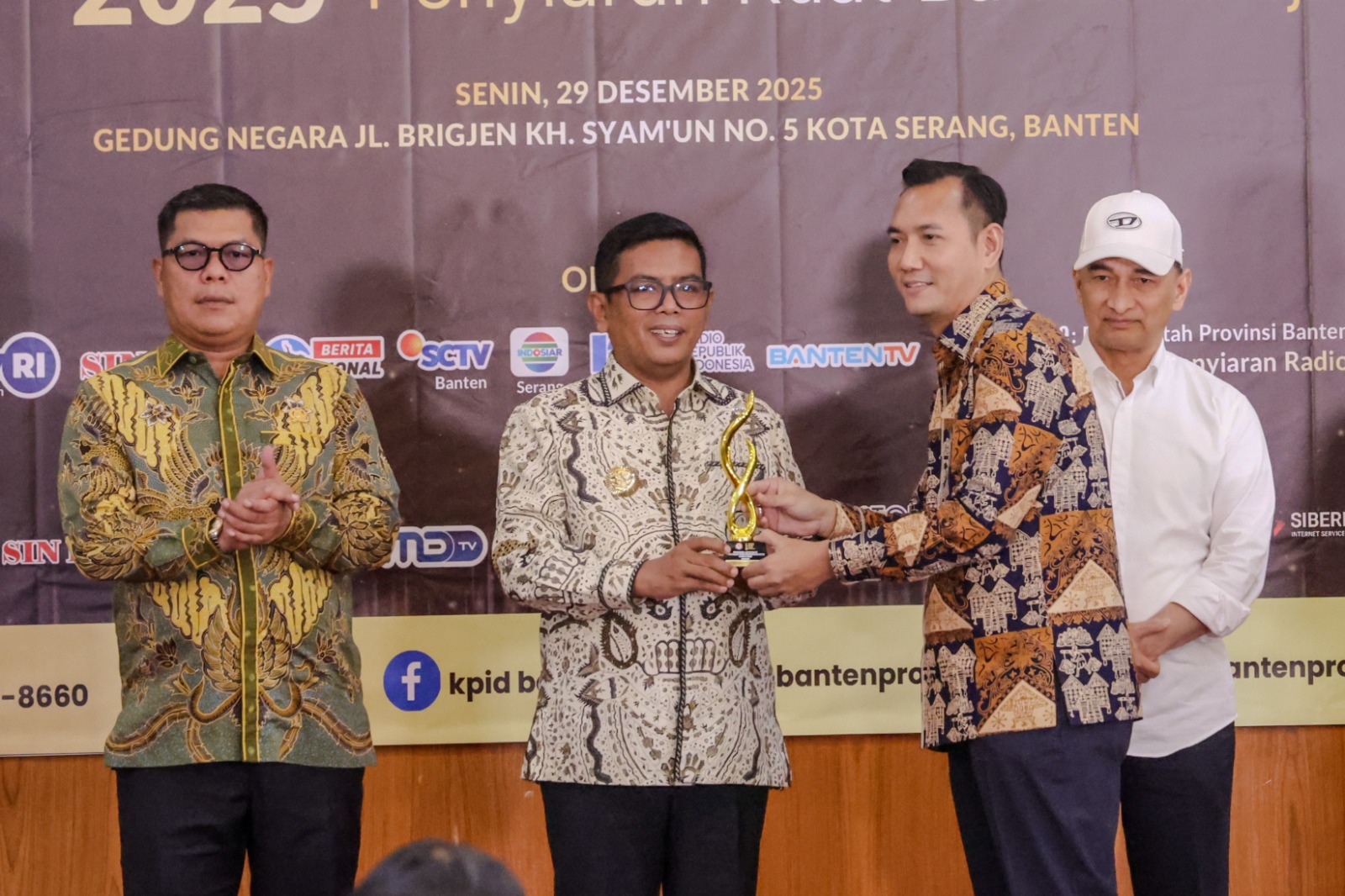 Penghargaan tersebut diserahkan langsung oleh Ketua Komisi Penyiaran Indonesia (KPI) Pusat Ubaidillah didampingi Ketua KPID Provinsi Banten Haris H. Witharja pada acara Malam Anugerah Penyiaran KPID Provinsi Banten di Gedung Negara Provinsi Banten, Kota Serang, Senin (29/12/2025).