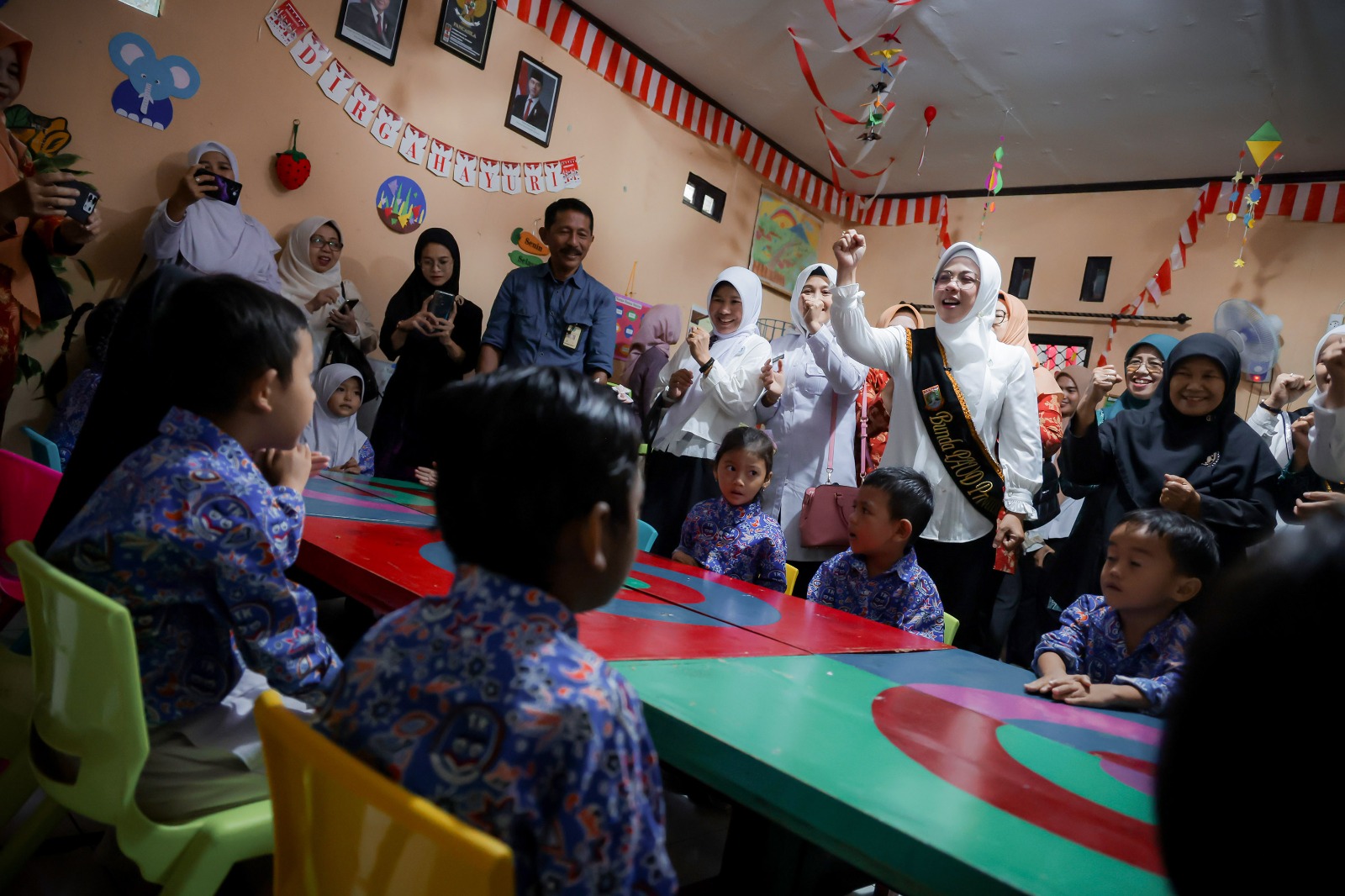 Terkait Program Pemberian Makanan Tambahan (PMT), Tinawati menegaskan bahwa pendidikan anak usia dini tidak hanya berfokus pada pembentukan karakter di dalam kelas. “Namun juga pemenuhan gizi. Alhamdulillah, sekolah ini juga sudah mendapatkan program MBG,” ucapnya.
