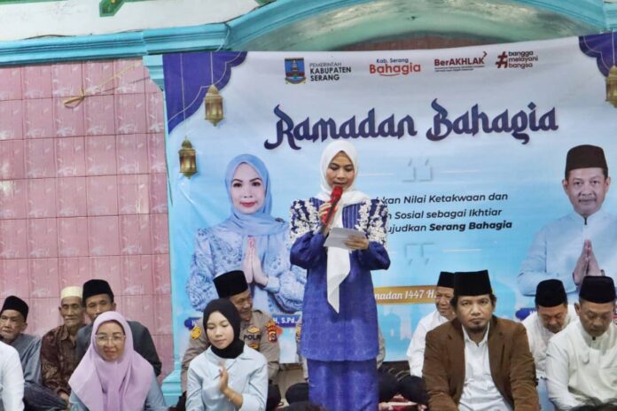 KATAWAY.CO.ID — Bupati Serang Ratu Rachmatuzakiyah mengawali kunjungan Ramadhan Bahagia 1447 Hijriyah tingkat Kabupaten Serang di Masjid Baitul Muttaqin Kampung Kelapan, Desa Kabuyutan, Kecamatan Tirtayasa pada Sabtu, 21 Februari 2026 sore. Pada momen yang digelar setiap tahun itu, Bupati Serang secara simbolis mengguyur bantuan dengan total mencapai puluhan juta rupiah.