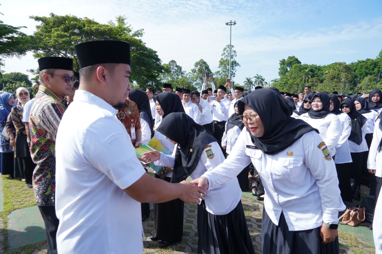 Lebih lanjut, Robinsar kembali menekankan pentingnya disiplin dan etos kerja, terlebih di tengah kondisi anggaran yang menuntut efisiensi. “Walaupun tahun depan banyak dinamika, dana kita terpotong 235 miliar, saya minta pelayanan kepada masyarakat tetap nomor satu. Jangan ada lagi yang hanya menunggu absen pulang. Kalau perintah atasan itu benar, jalankan. Kalau tidak benar, laporkan kepada saya,” ujarnya.